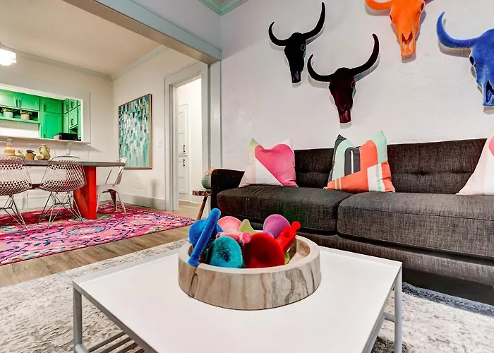 The 0-bedroom Color Pop Cottage - Half Mile From Plaza District offers swift access to various city sites, such as Penn Ave. Church of the Nazarene, situated nearly 5 minutes' walk away. Located at a distance of 2.9 km from Oklahoma City Museum of Art, the villa provides Wi-Fi and a car park.